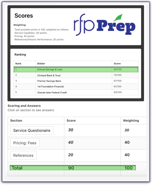 “rfpPrep® enables our entity to move quickly in notifying potential vendors of an open opportunity to bid on our banking services."